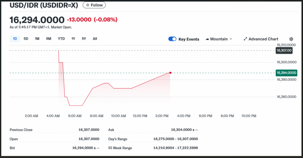 “Pada pagi hari Jumat, 8 Agustus 2025, rupiah dibuka pada level (bid) Rp 16.300 per dolar AS. Yield SBN 10 tahun stabil di 6,44%,” ujarnya.