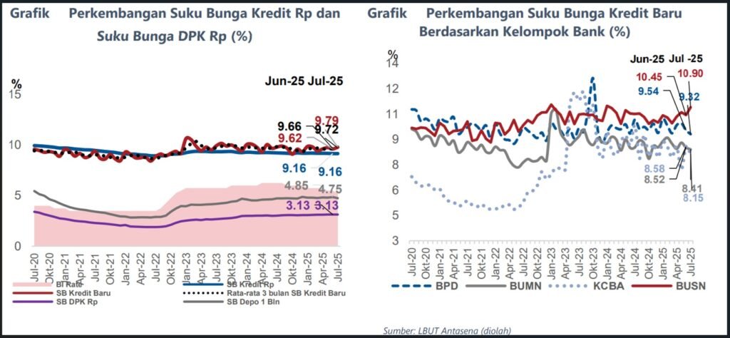 Pada Juli 2025, suku bunga kredit tercatat sebesar 9,16%, masih relatif sama dengan bulan sebelumnya. BI memandang suku bunga kredit perbankan perlu terus diturunkan, sehingga dapat mendorong peningkatan penyaluran kredit/pembiayaan untuk mendukung pertumbuhan ekonomi nasional.