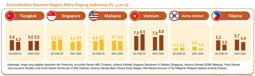 UKMDANBURSA.COM – Realisasi ekonomi Indonesia pada triwulan IV-2025 yang tumbuh 5,39% terhadap triwulan IV-2024 (year on year) dan 5,11% sepanjang tahun 2025 (c-to-c) harus diapresiasi. Serangkaian kebijakan stimulus, utamanya stimulus fiskal, mampu menopang perekonomian tumbuh positif, meski masih di bawah target APBN tahun lalu 5,2%.